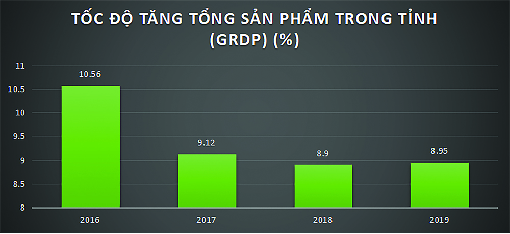 Tổng sản phẩm trong tỉnh (GRDP) tăng 8,95% (kế hoạch 8,5-8,7%); GRDP bình quân đầu người 140,8 triệu đồng (kế hoạch 140,6 triệu đồng); cơ cấu kinh tế - công nghiệp - dịch vụ - nông nghiệp - thuế sản phẩm trừ trợ cấp sản phẩm với tỉ trọng tương ứng là 64,07% - 25,05% - 2,98% - 7,9% (kế hoạch 63,7% - 25% - 3,2% - 8,1%)