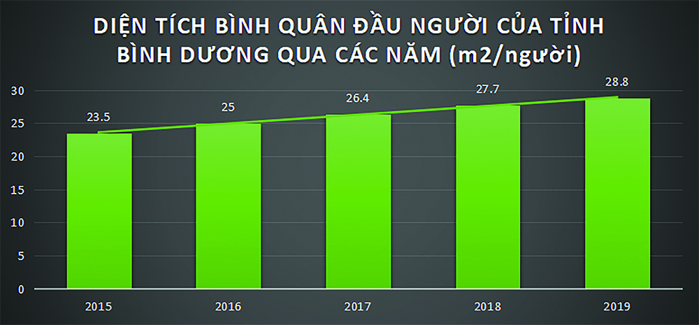 Diện tích sàn nhà ở bình quân đầu người của Bình Dương qua các năm